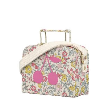 Bonpoint Ladies Shoulder Bag. SKU: P04GBAW00001-520. Material: Cotton. Color: Fleurs Rose. Size: 9.5cm x 12.5cm x 5.5 cm. Bonpoint Aimane Floral-Print Cotton Shoulder Bag. This shoulder bag features an all-over floral print with a signature cherry design, gold-tone hardware, and a hard rectangular body. It has a single flat top handle, an adjustable detachable shoulder strap, a box-clasp fastening, and a spacious main compartment. 100% cotton. Made in China.