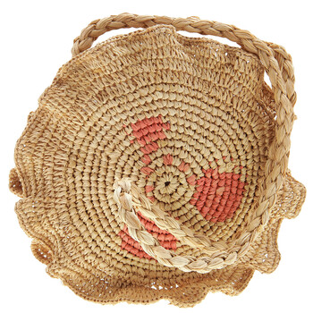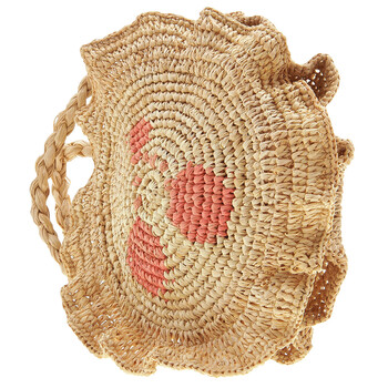 Bonpoint Ladies Crossbody. SKU: C04GBAW00002-035. Barcode: 3605795164783. Color: Beige. Bonpoint Fina Raffia Shoulder Bag. The Fina shoulder bag is woven from raffia and features a ruffled trim, a circular body, and a single braided shoulder strap. It includes a main compartment and is finished with the signature cherry print. Cotton 100%
