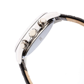 Silver-tone stainless steel case with a black genuine leather strap. Fixed silver-tone stainless steel bezel. Black dial with silver-tone hands and index hour markers. Minute markers around the outer rim. Dial Type: Analog. Luminescent hands and markers. Quartz movement. Scratch resistant mineral crystal. Pull / push crown. Solid case back. Round case shape, case size: 47 mm, case thickness: 12 mm. Band width: 22 mm. Buckle clasp. Water resistant at 50 meters / 165 feet. Functions: chronograph, GMT, second time zone, hour, minute, second. Sport watch style. Watch label: Japan Movt. Item Variations: BRD6801. Breed Lacroix Chronograph Black Dial Watch 6801.