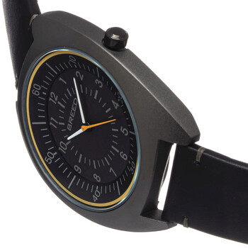 Band Color: Black Genuine Leather; Band Width: 20mm near case; 18mm near clasp/buckle; Bezel Color: Black; Case: Black + Circle-Shaped; Case Finish: Matte + Alloy; Case Thickness: 8mm; Case Width: 43mm; 45mm with Crown; Clasp / Buckle: Strap Buckle; Dial: Black + Analog; Hand Color: Grey; Movement: Japanese + Quartz; Time Zones: Single; Water Resistance: 5 ATM.