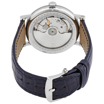 18kt white gold case with a blue (alligator/crocodile) leather strap. Fixed 18kt white gold bezel. Blue dial with white hands and Arabic numeral hour markers. Minute markers around the outer rim. Dial Type: Analog. Date display at the 3 o'clock position. Breguet Calibre 777Q Automatic movement, containing 26 Jewels, bitting at 28800 vph, and has a power reserve of approximately 44 hours. Scratch resistant sapphire crystal. Pull / push crown. Transparent case back. Round case shape, case size: 38 mm, case thickness: 8.8 mm. Tang clasp. Water resistant at 30 meters / 100 feet. Functions: date, hour, minute, second. Classique Series. Luxury watch style. Watch label: Swiss Guilloche Main. Breguet Classique Automatic Blue Dial Men's Watch 5177BB/2Y/9V6.