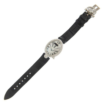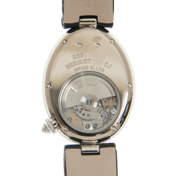 18kt white gold case with a black alligator/crocodile leather strap. Fixed 18kt white gold bezel with diamond set. Mother of pearl dial with black hands and Roman numeral hour markers. Dial Type: Analog. Breguet Calibre 586/1 Automatic movement, containing 29 Jewels, bitting at 21600 vph, and has a power reserve of approximately 38 hours. Scratch resistant sapphire crystal. Pull / push crown. Transparent case back. Oval case shape, case size: 33 mm x 24.95 mm, case thickness: 8.50 mm. Deployant buckle clasp. Water resistant at 30 meters / 100 feet. Functions: hour, minute. Reine De Naples Series. Luxury watch style. Watch label: Swiss Made. Breguet Reine De Naples Automatic Diamond Ladies Watch 8928bb/51/944/dd0d3L.