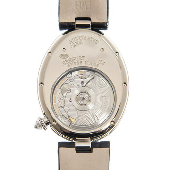 18kt white gold case with a black alligator band. Fixed 18kt white gold bezel with diamond set. White dial with blue hands and Arabic numeral hour markers. Dial Type: Analog. Breguet Calibre 537/3 Automatic movement, containing 26 Jewels, bitting at 21600 vph, and has a power reserve of approximately 45 hours. Scratch resistant sapphire crystal. Pull / push crown. Transparent case back. Oval case shape, case size: 36 mm, case thickness: 10.05 mm. Deployant buckle clasp. Water resistant at 30 meters / 100 feet. Functions: hour, minute. Additional Info: original box, international warranty card, manual (complete accessories). Reine De Naples Series. Luxury watch style. Watch label: Swiss Guilloche Main. Breguet Reine De Naples Automatic Diamond White Dial Ladies Watch 8918BB58964D00D3L.