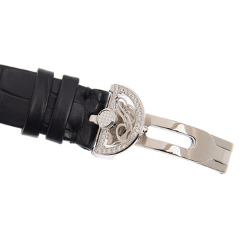 18kt white gold case with a black satin strap. Fixed diamond set bezel. White dial with Arabic numeral hour markers. Minute markers around the inner rim. Dial Type: Analog. Breguet Calibre 586 automatic movement with a 38-hour power reserve. Scratch resistant sapphire crystal. Pull / push crown. Transparent (see through) case back. Oval case shape, case size: 33 mm x 24.95 mm, case thickness: 8.6 mm. Deployment clasp. Water resistant at 30 meters / 100 feet. Functions: hour, minute. Luxury watch style. Watch label: Swiss Made. Breguet Reine de Naples Automatic Diamond White Dial Ladies Watch 8928BB.