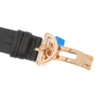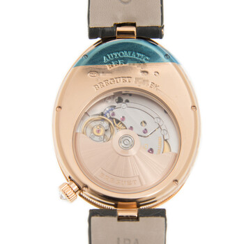 18kt rose gold case with a grey alligator/crocodile leather strap. Fixed 18kt rose gold bezel. Grey dial with rose gold-tone hands and Roman numeral hour markers. Dial Type: Analog. Breguet Calibre 591C Automatic movement, containing 25 Jewels, bitting at 28800 vph, and has a power reserve of approximately 38 hours. Scratch resistant sapphire crystal. Pull / push crown. Transparent case back. Oval case shape, case size: 34.95 mm x 43 mm, case thickness: 9.58 mm. Deployant buckle clasp. Water resistant at 30 meters / 100 feet. Functions: hour, minute. Reine De Naples Series. Luxury watch style. Watch label: Swiss Guilloche Main. Breguet Reine De Naples Automatic Grey Dial Ladies Watch 8968BR/X1/986 0D00.