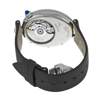 18kt white gold case with a black satin strap. Fixed 18kt white gold bezel set with diamonds. Mother of pearl dial with blue hands and Roman numeral hour markers. Minute markers around the outer rim. Dial Type: Analog. Two sub-dials displaying: 60 second and combined power reserve and moonphase. Breguet calibre 537 DRL1 automatic movement with a 40 hour power reserve. Scratch resistant sapphire crystal. Pull / push crown. Transparent case back. Case dimensions: 28.45 mm x 36.5 mm. Case thickness: 10.05 mm. Oval case shape. Band width: 17.8 mm. Band length: 7 inches. Deployant clasp. Water resistant at 30 meters / 100 feet. Functions: hour, minute, second, moonphase, 40 hour power reserve. Luxury watch style. Breguet Reine De Naples Mother of Pearl Dial 18kt White Gold Diamond Black Satin Ladies Watch 8908BB52864D00D.
