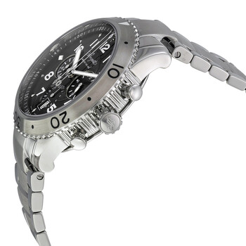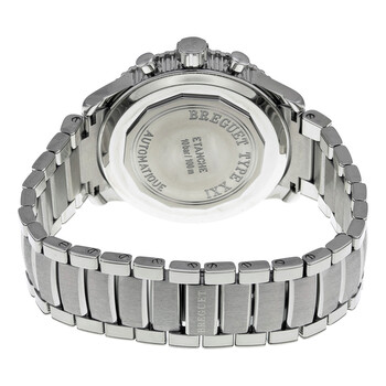 Silver-tone stainless steel case and bracelet. Uni-directional rotating silver-tone stainless steel bezel. Ruthenium dial with luminous hands and Arabic numeral hour markers. Minute markers around the outer rim. Dial Type: Analog. Luminescent hands and markers. Date display at the 6 o'clock position. Chronograph - three sub-dials displaying: 60 second, 12 hour and 24 hour. Breguet Calibre 584 Q Automatic movement, containing 25 Jewels, composed of 319 parts, bitting at 28800 vph, and has a power reserve of approximately 48 hours. Scratch resistant sapphire crystal. Pull / push crown. Solid case back. Round case shape, case size: 42.5 mm, case thickness: 15.4 mm. Hidden fold over clasp. Water resistant at 100 meters / 330 feet. Functions: chronograph, date, hour, minute, second. Additional Info: flyback chronograph function (allows instant restarting of the chronograph with a single push of the button instead of the need to stop & then reset t. Transatlantique Type Xxi Flyback Series. Luxury watch style. Watch label: Swiss Made. Breguet Transatlantique Type XXI Flyback Men's Watch 3810ST92SZ9.