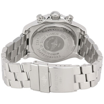 Stainless steel case with a stainless steel bracelet. Uni-directional rotating stainless steel bezel. Hurricane white dial with luminous hands and Arabic numeral hour markers. Minute markers. 1/100th second markers around the outer rim. Dial Type: Analog. Luminescent hands and dial markers. Date display at the 3 o'clock position. Chronograph - three sub-dials displaying: 60 seconds, 30 minutes and 12 hours. Breitling calibre 13 automatic movement with a 42-hour power reserve. Scratch resistant sapphire crystal. Screw locked crown - two gaskets. Solid case back. Round case shape. Case size: 45 mm. Case thickness: 17.4 mm. Band width: 22 mm. Band length: 8.5 inches. Deployment with push button release clasp. Water resistant at 300 meters / 1000 feet. Functions: chronograph, chronometer, date, hour, minute, second. Additional Info: a1338012-. Luxury watch style. Watch label: Swiss made. Item Variations: A1338012 G692, A1338012.G692, A1338012G692. Breitling Aeromarine Avenger Skyland Men's Watch A1338012-G692SS.