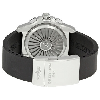 Silver-tone stainless steel case with a black rubber ocean racer strap. Bi-directional rotating slide rule black stainless steel bezel. Gray dial with silver-tone hands and luminous hour markers. Slide rule aka "navigation computer" around the outer rim. Dial Type: Analog-digital. Luminescent hands and dial markers. Perpetual day and date calendar. Breitling Calibre 78 quartz movement. Scratch resistant sapphire crystal. Solid case back. Round case shape, case size: 43.5 mm, case thickness: 17.58 mm. Band width: 22-20 mm. Deployment clasp. Water resistant at 50 meters / 165 feet. Functions: perpetual calendar, date, day, hour, minute, second, chronograph, alarm, digital minute repeater, GMT, countdown timer, power reserve indicator. Sport watch style. Watch label: Swiss Made. Item Variations: A7836438 F539BKOR, A7836438.F539BKOR, A7836438F539BKOR. Breitling Airwolf Raven Grey Dial Chronograph Men's Watch A7836438-F539BKRD.