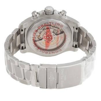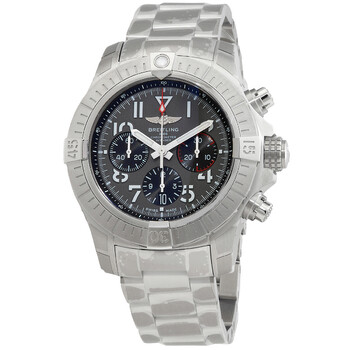 Silver-tone stainless steel case with a black stainless steel bracelet. Uni-directional rotating silver-tone stainless steel bezel. Anthracite dial with silver-tone hands and index hour markers. Minute markers around the outer rim. Dial Type: Analog. Luminescent hands and markers. Date display at the 6 o'clock position. Chronograph - three sub-dials displaying: 60 second, 30 minute and 12 hour. Breitling Calibre 01 Automatic movement, containing 47 Jewels, composed of 346 parts, bitting at 28800 vph, and has a power reserve of approximately 70 hours. Scratch resistant sapphire crystal. Screw down crown. Transparent case back. Round case shape, case size: 45 mm, case thickness: 15.7 mm. Band width: 22/20 mm. Folding clasp. Water resistant at 300 meters / 1000 feet. Functions: chronograph, column wheel, date, hour, minute, second, chronometer. Avenger B01 Series. Luxury watch style. Watch label: Swiss Made. Breitling Avenger B01 Chronograph Automatic Chronometer Anthracite Dial Men's Watch AB01821A1B1A1.