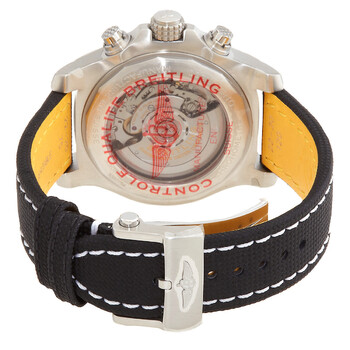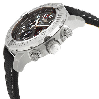 Silver-tone stainless steel case with a black calfskin leather strap. Uni-directional rotating silver-tone stainless steel bezel. Anthracite dial with silver-tone hands and index hour markers. Minute markers around the outer rim. Dial Type: Analog. Luminescent hands and markers. Date display at the 6 o'clock position. Chronograph - three sub-dials displaying: 60 second, 30 minute and 12 hour. Breitling Calibre 01 Automatic movement, containing 47 Jewels, composed of 346 parts, bitting at 28800 vph, and has a power reserve of approximately 70 hours. Scratch resistant sapphire crystal. Screw down crown. Transparent case back. Round case shape, case size: 45 mm, case thickness: 15.7 mm. Band width: 22/20 mm. Water resistant at 300 meters / 1000 feet. Functions: chronograph, column wheel, date, hour, minute, second, chronometer. Avenger B01 Series. Luxury watch style. Watch label: Swiss Made. Breitling Avenger B01 Chronograph Automatic Chronometer Anthracite Dial Men's Watch AB01821A1B1X2.