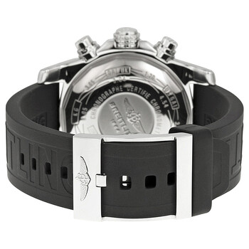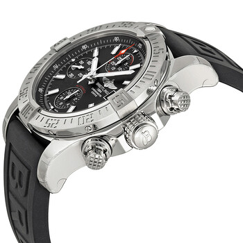 Stainless steel case with a black (diver pro III) rubber strap. Uni-directional rotating stainless steel bezel. Black dial with luminous silver-tone hands and index hour markers. Minute markers. 1/100th scale around the outer rim. Dial Type: Analog. Luminescent hands and markers. Date display at the 3 o'clock position. Chronograph - three sub-dials displaying: 60 second, 30 minute and 12 hour. Breitling calibre 13 automatic movement with a 42-hour power reserve. Scratch resistant sapphire crystal. Screw locked clasp - two gaskets. Solid case back. Case size: 43 mm. Case thickness: 16.50 mm. Round case shape. Band width: 22 mm. Band length: 8.5 inches. Tang clasp. Water resistant at 300 meters / 1000 feet. Functions: chronograph, chronometer, date, hour, minute, second. Dress watch style. Watch label: Swiss Made. Item Variations: A1338111 BC32BKPT3, A1338111.BC32BKPT3, A1338111BC32BKPT3. Breitling Avenger II Automatic Black Dial Black Rubber Men's Watch A1338111-BC32BKPT3.
