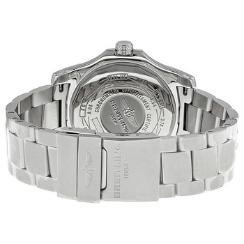 Stainless steel case with a stainless steel bracelet. Uni-directional rotating stainless steel bezel. Black dial with luminous hands and index hour markers. Minute markers. 24 hour (GMT) scale appears around the outer rim. Dial Type: Analog. Luminescent hands and markers. Date display at the 3 o'clock position. Breitling Calibre 32 automatic movement with a 42-hour power reserve. Scratch resistant sapphire crystal. Screw locked - two gaskets crown. Solid case back. Round case shape. Case size: 43 mm. Case thickness: 12.20 mm. Band width: 22 mm. Band length: 8.5 inches. Fold over clasp with a safety release. Water resistant at 300 meters / 1000 feet. Functions: GMT, second time zone, date, hour, minute, second, chronometer. Luxury watch style. Watch label: Swiss Made. Breitling Avenger II GMT Black Dial Men's Watch A3239011/BC35SS.