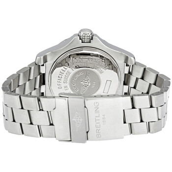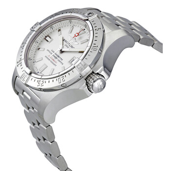 Stainless steel case with a stainless steel link bracelet. Unidirectional bezel. Silver dial with luminous hands and index hour markers. 1/100th second scale appear around the outer rim. Dial Type: analog. Date display appears at the 3 o'clock position. Automatic movement. Scratch resistant sapphire crystal. Screw locked crown. Screwed in case back. Case diameter: 45 mm. Case thickness: 18.50 mm. Band width: 22/20 mm. Deployment clasp. Water resistant at 3000 meters/ 10000 feet. Functions: hours, minutes, seconds, date. Luxury watch style.
