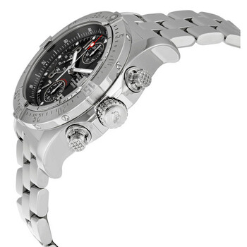 Stainless steel case with a stainless steel bracelet. Unidirectional stainless steel bezel. Black dial with luminous hands and Arabic numeral hour markers. Minute markers. 1/100th second scale around the outer rim. Date display appears at the 3 o'clock position. Chronograph - three sub-dials displaying: 12 hours, 30 minutes and 60 seconds. Automatic movement. Scratch resistant sapphire crystal. Screw locked crown. Solid case back. Case diameter: 45.40 mm. Case thickness: 17.40 mm. Deployment clasp. Water resistant at 300 meters/ 1000 feet. Functions: hours, minutes, seconds, calendar, chronograph. Breitling Avenger Skyland Chronograph Men's Watch A1338012-B975SS.