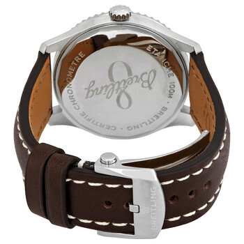 Stainless steel case with a brown (calfskin) leather strap. Bi-directional rotating stainless steel bezel. Blue dial with luminous silver-tone hands and Arabic numeral hour markers. Minute markers around the outer rim. Dial Type: Analog. Luminescent hands and markers. Date display at the 6 o'clock position. Day of the week display centered on the 12 o'clock position. Breitling calibre 45 automatic movement, based upon ETA 2834-2, containing 25 Jewels, bitting at 28800 vph, and has a power reserve of approximately 42 hours. Scratch resistant sapphire crystal. Screw locked crown. Solid case back. Round case shape. Case size: 41 mm. Case thickness: 11.19 mm. Band width: 21 mm. Fold over clasp. Water resistant at 100 meters / 330 feet. Functions: date, hour, minute, second. Aviator 8 Automatic Day & Date 41 Series. Luxury watch style. Watch label: Swiss Made. Breitling Aviator 8 Automatic Day Date 41 Blue Dial Men's Watch A45330101C1X6.