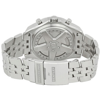 Stainless steel case with a stainless steel bracelet. Unidirectional rotating stainless steel bezel. Bronze dial with luminous hands and stick hour markers. Minute markers. tachometer scale around the outer rim. Date displays at the 12 o'clock position. Chronograph - three sub-dials display: 12 hours, 30 minutes and 60 seconds. Automatic movement. Scratch resistant sapphire crystal. Solid case back. Case diameter: 48.70 mm. Deployment clasp. Water resistant at 100 meters/ 330 feet. Functions: hours, minutes, seconds, date, chronograph, variable tachometer. Breitling Bentley 6.75 Bronze Dial Chronograph Men's Watch A4436412-Q569SS.