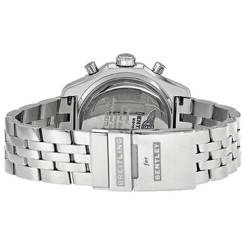 Stainless steel case with a stainless steel bracelet. Fixed stainless steel bezel. Silver dial with silver-tone hands and stick hour markers. An Arabic numeral marks the 12 o'clock position. Minute markers. Tachymeter around the outer rim. Dial Type: Analog. Luminescent hands and markers. Date display appears between the 4 and 5 o'clock positions. Chronograph - three sub-dials displaying: 60 second, 30 minute and 12 hour. Automatic movement with a 42-hour power reserve. Scratch resistant sapphire crystal. Screw locked crown. Solid case back. Case diameter: 42 mm. Case thickness: 14 mm. Round case shape. Fold over clasp with a safety release. Water resistant at 100 meters / 330 feet. Functions: chronograph, date, hour, minute, second. Luxury watch style. Watch label: Swiss Made. Breitling Bentley Barnato 42 Automatic Chronograph Men's Watch A4139021-G754.