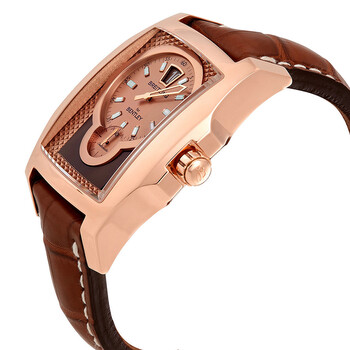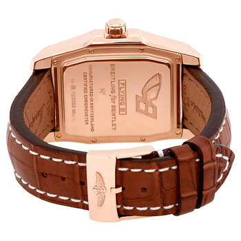 18kt rose gold case with a brown alligator leather strap. Fixed 18kt rose gold bezel. Rose dial with rose gold-tone hands and index hour markers. Minute markers around the outer rim. Dial Type: Analog. One subdial displaying: small second. Breitling Calibre 28 Automatic movement, based upon ETA 2892-A2, containing 21 Jewels, bitting at 28800 vph, and has a power reserve of approximately 42 hours. Scratch resistant sapphire crystal. Solid case back. Tonneau case shape, case size: 57 mm x 38.5 mm. Tang clasp. Water resistant at 100 meters / 330 feet. Functions: date, hour, minute, small second. Bentley Flying B Series. Luxury watch style. Watch label: Swiss Made. Breitling Bentley Flying Automatic Men's Watch R2836212-Q534BRCT.