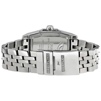 Silver-tone stainless steel case with a silver-tone stainless steel bracelet. Fixed silver-tone stainless steel bezel. Amber dial dial with silver-tone hands and index hour markers. Roman numeral marks the 12 o'clock position. minute markers around an inner ring. Dial Type: Analog. Luminescent hands and markers. Date display at the 12 o'clock position. One subdial displaying: small second. Breitling Calibre 16 Automatic movement, based upon ETA 2892-A2, containing 30 Jewels, bitting at 28800 vph, and has a power reserve of approximately 42 hours. Scratch resistant sapphire crystal. Screw down crown. Solid case back. Rectangle case shape, case size: 51 mm x 36 mm, case thickness: 13 mm. Band width: 21 mm. Fold over with safety release clasp. Water resistant at 100 meters / 330 feet. Functions: date, hour, minute, second. Breitling For Bentley Series. Luxury watch style. Breitling Bentley Flying B Automatic Amber Dial Men's Watch A1636212-H533SS.