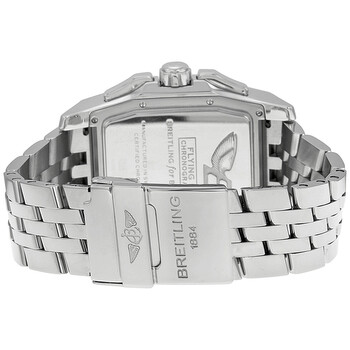 Stainless steel case with a stainless steel bracelet. Fixed stainless steel bezel. Bronze dial with luminous silver-tone hands and index hour markers. Roman numeral marks the 12 o'clock position. Minute markers around an inner ring. Dial Type: Analog. Luminescent hands and markers. Date display below the 12 o'clock position. Chronograph - three sub-dials displaying: 60 second, 30 minute and 12 hour. Automatic movement. Scratch resistant sapphire crystal. Screw locked crown. Screw down case back. Case dimensions: 58.20 mm x 38.50 mm. Case thickness: 16.5 mm. Rectangle case shape. Deployment clasp. Water resistant at 300 meters / 1000 feet. Functions: chronograph, date, hour, minute, second. Additional Info: limited edition of 1000. official certified chronometer by cosc. Luxury watch style. Watch label: Swiss Made. Breitling Bentley Flying B Chronograph Bronze Dial Watch A4436512/Q544.