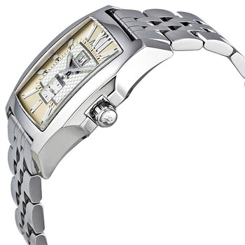 Silver-tone stainless steel case with a silver-tone stainless steel bracelet. Fixed silver-tone stainless steel bezel. Desert dune dial with luminous silver-tone hands and index hour markers. Roman numeral marks the 12 o'clock position. minute markers around the inner rim. Dial Type: Analog. Luminescent hands and markers. Date display below the 12 o'clock position. Small second above the 6 o'clock position subdials. Breitling Calibre 16 Automatic movement, based upon ETA 2892-A2, containing 30 Jewels, bitting at 28800 vph, and has a power reserve of approximately 42 hours. Scratch resistant sapphire crystal. Screw locked crown. Solid case back. Rectangle case shape, case size: 51.40 mm x 34.50 mm, case thickness: 13 mm. Band width: 21 mm. Fold over with safety release clasp. Water resistant at 100 meters / 330 feet. Functions: date, hour, minute, second. Breitling For Bentley Series. Luxury watch style. Watch label: Swiss Made. Breitling Bentley Flying No. 3 Automatic Desert Dune Dial Men's Watch A1636212-H534SS.