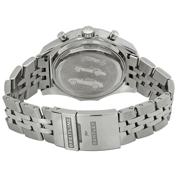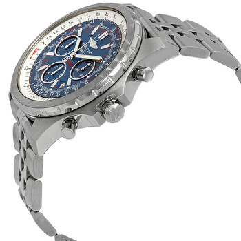 Stainless steel case with a stainless steel bracelet. Uni-directional rotating stainless steel bezel. Blue dial with luminous silver-tone hands and index hour markers. Minute markers. Slide rule markings around the outer rim. Dial Type: Analog. Luminescent hands and markers. Date display between the 4 and 5 o'clock positions. Chronograph - three sub-dials displaying: 60 second, 15 minute and 6 hour. Automatic movement. Scratch resistant sapphire crystal. Solid case back. Round case shape. Case size: 48 mm. Case thickness: 15.5 mm. Deployment clasp. Water resistant at 100 meters / 330 feet. Functions: chronograph, date, hour, minute, second, slide rule. Luxury watch style. Watch label: Swiss Made. Breitling Bentley Motors T Chronograph Automatic Blue Dial Men's Watch A2536313/C781-991A.
