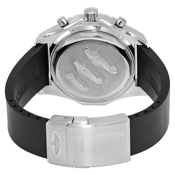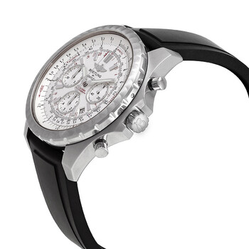 Silver-tone stainless steel case with a black rubber strap. Bi-directional rotating silver-tone stainless steel bezel. Silver storm dial with silver-tone hands and index hour markers. Minute markers around the outer rim. Dial Type: Analog. Luminescent hands and markers. Date display between 4 and 5 o'clock position. Automatic movement. Scratch resistant sapphire crystal. Screw down crown. Solid case back. Round case shape, case size: 47.8mm. Deployment clasp. Water resistant at 100 meters / 330 feet. Functions: chronograph, date, hour, minute, second, slide rule. Bentley Motors T Speed Series. Luxury watch style. Watch label: Swiss Made. Breitling Bentley Motors T Speed Chronograph Automatic Men's Watch A2536513/G675.137S.A20DSA.2.