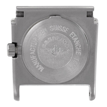 Silver-tone stainless steel case. Black dial with index hour markers. Arabic numeral marker at the 3, 6, 9 and 12 o'clock position. Dial Type: Analog. Square case shape. Functions: hour, minute. Breitling Black Dial Second Time Zone Watch Attachment B6107211/C191.106X.A18. It is added to a strap or bracelet of a Breitling watch allowing for a second timezone.