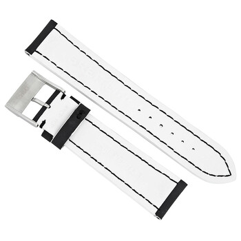 Black leather strap. Band width: 22mm - 20mm. Band length: 7 inches. Tang buckle clasp. Breitling Black Leather Strap 22mm - 20mm 226X-A20BASA.1. This strap features white leather backing underneath,
