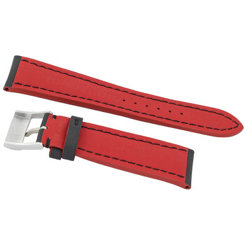 Black leather strap. Band width: 24mm - 20mm. Band length: 7 inches. Tang buckle clasp. Breitling Black Leather Strap with Red Trimming 24mm - 20mm 233X-A20BA.1.