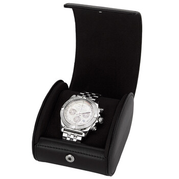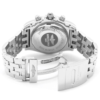 Stainless steel case with a stainless steel bracelet. Uni-directional rotating bezel. Silver dial with silver-tone hands and Roman numeral hour markers. Minute markers. 1/100th scale markings. tachymeter around the outer rim. Dial Type: Analog. Luminescent hands and markers. Date display between 4 and 5 o'clock position. Chronograph - three sub-dials displaying: 60 second, 30 minute and 12 hour. Automatic movement. Breitling b01 engine. Scratch resistant sapphire crystal. Screw down crown. Solid case back. Case diameter: 44 mm. Round case shape. Deployment clasp. Water resistant at 500 meters / 1650 feet. Functions: hours, minutes, seconds, date, chronograph (1/4 second), tachometer, ghour minute, second. Luxury watch style. Watch label: Swiss Made. Item Variations: AB011011 G676SS, AB011011.G676SS, AB011011G676SS. Breitling Chronomat 44 Silver Dial Stainless Steel Automatic Men's Watch AB011011/G676SS.
