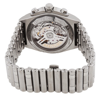 Silver-tone titanium case and bracelet. Silver-tone titanium bezel. Slate dial with silver-tone hands and index hour markers. Minute markers around the outer rim. Dial Type: Analog. Luminescent hands and markers. Chronograph - three sub-dials displaying: 60 second, 30 minute and 1/10th of a second. Breitling Calibre 01 Automatic movement, containing 47 Jewels, composed of 346 parts, bitting at 28800 vph, and has a power reserve of approximately 70 hours. Scratch resistant sapphire crystal. Screw down crown. Transparent case back. Round case shape, case size: 42 mm, case thickness: 15.1 mm. Band width: 22 mm. Fold over clasp with a safety release. Water resistant at 200 meters / 660 feet. Functions: chronograph, hour, minute, second. Sport watch style. Watch label: Swiss Made. Breitling Chronograph Automatic Men's Watch EB0134101M1E1.