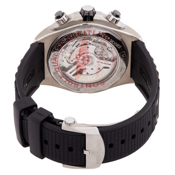 Silver-tone titanium case with a black rubber strap. Black titanium bezel. Black dial with silver-tone hands and index hour markers. Minute markers around the outer rim. Dial Type: Analog. Luminescent hands and markers. Chronograph - three sub-dials displaying: 60 second, 60 minute and 1/10th of a second. Breitling Calibre 01 Automatic movement, containing 47 Jewels, composed of 346 parts, bitting at 28800 vph, and has a power reserve of approximately 70 hours. Scratch resistant sapphire crystal. Screw down crown. Transparent see through case back. Round case shape, case size: 44 mm, case thickness: 14.4 mm. Band width: 22 mm. Fold over clasp with a safety release. Water resistant at 200 meters / 660 feet. Functions: chronograph, hour, minute, second. Sport watch style. Watch label: Swiss Made. Breitling Chronograph Automatic Black Dial Men's Watch EB0136251M1S1.