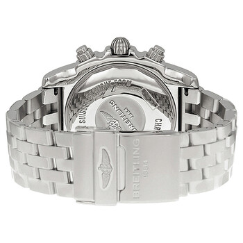 Stainless steel case with a stainless steel bracelet. Uni-directional rotating stainless steel bezel. Metallica brown dial with silver-tone hands and Roman numeral hour markers. Minute markers. 1/100th markers. Tachymeter around the outer rim. Dial Type: Analog. Luminescent hands. Date display between the 4 and 5 o'clock positions. Chronograph - three sub-dials displaying: 60 second, 30 minute and 12 hour. Automatic movement with 70 hour power reserve. Scratch resistant sapphire crystal. Pull / push crown. Solid case back. Case diameter: 43.50 mm. Case thickness: 17 mm. Round case shape. Bracelet width: 20 mm / 22 mm. Deployment clasp. Water resistant at 500 meters / 1650 feet. Functions: chronograph, date, hour, minute, second. Luxury watch style. Breitling Chronomat B01 Brown Dial Stainless Steel Men's Watch AB011011-Q566SS.