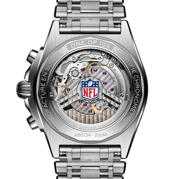 Silver-tone stainless steel case and bracelet. Uni-directional rotating silver-tone stainless steel bezel. Blue dial with silver-tone hands and index hour markers. Minute markers around the outer rim. Dial Type: Analog. Luminescent hands and markers. Date display at the 6 o'clock position. Chronograph - three sub-dials displaying: 60 second, 30 minute and 12 hour. Breitling Calibre 01 Automatic movement, containing 47 Jewels, composed of 346 parts, bitting at 28800 vph, and has a power reserve of approximately 70 hours. Scratch resistant sapphire crystal. Screw down crown. Transparent case back. Round case shape, case size: 42 mm, case thickness: 14 mm. Band width: 22 mm. Deployment with push button release clasp. Water resistant at 200 meters / 660 feet. Functions: chronograph, column wheel, date, hour, minute, second, chronometer. Chronomat B01 Series. Luxury watch style. Watch label: Swiss Made. Breitling Chronomat B01 Chronograph Automatic Chronometer Blue Dial Men's Watch AB01342B1CAA1.