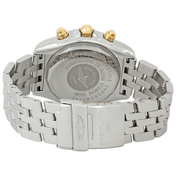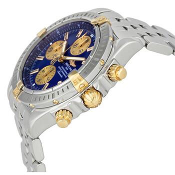 Steel case with a steel bracelet. Unidirectional rotating steel bezel. Blue dial with luminous hands and stick hour markers. Minute markers. Tachymeter scale around the outer rim. Luminescent hands and markers. Date displays at the 3 o'clock position. Chronograph - three sub-dials displaying: 12 hours, 30 minutes and 60 seconds. Automatic movement. Scratch resistant sapphire crystal. Screw locked crown. Screwed in case back. Case diameter: 43.70 mm. Case thickness: 17.10 mm. Deployment clasp. Water resistant at 300 meters/ 1000 feet. Functions: hours, minutes, seconds, tachymeter, chronograph. Breitling Chronomat Men's Watch B1335611-C646SS
