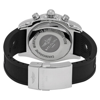 Stainless steel case with a black crocodile leather strap. Uni-directional rotating bezel. Black dial with silver-tone hands and index hour markers. Tachymeter scale around the outer rim. Dial Type: Analog. Luminescent hands and markers. Date display between 4 and 5 o'clock position. Chronograph - three sub-dials displaying: 60 second, 30 minute and 12 hour. Automatic movement. Caliber 04 engine. Scratch resistant sapphire crystal. Screw down crown. Solid case back. Case diameter: 47 mm. Round case shape. Tang clasp. Water resistant at 500 meters / 1650 feet. Functions: date, GMT, second time zone, hour, minute, second. Luxury watch style. Breitling Chronomat GMT Black Dial Stainless Steel Men's Watch AB041012/BA69BKCT.