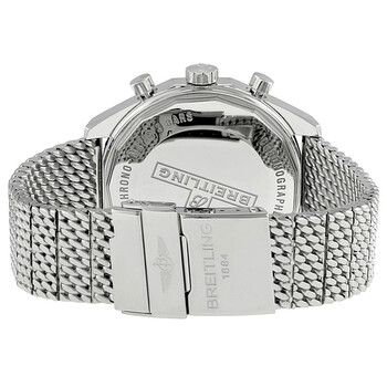 Silver-tone stainless steel case with a silver-tone stainless steel bracelet. Bi-directional rotating with slide rule black stainless steel bezel. Bronze dial with silver-tone hands and stick hour markers. Minute markers. mile / kilometer conversion scale. around the outer rim. Dial Type: Analog. Luminescent hands and markers. Date display at the 6 o'clock position. Chronograph - three sub-dials displaying: 60 second, 30 minute and 12 hour. Breitling Calibre 14 automatic movement with a 42-hour power reserve. Scratch resistant sapphire crystal. Pull / push crown. Solid case back. Round case shape, case size: 49 mm, case thickness: 14 mm. Band width: 24 mm. Hidden deployment clasp. Water resistant at 30 meters / 100 feet. Functions: chronograph, date, hour, minute, second, chronometer, nautical miles conversion scale. Luxury watch style. Watch label: Certifie Chronometre. Breitling Chrono-matic 49 Automatic Chronograph Men's Watch A1436002-Q556SS.