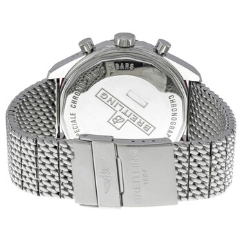 Stainless steel case with a stainless steel bracelet. Bi-directional rotating bezel. Black dial with silver-toned hands and index hour markers. Tachymeter scale appears around the outer rim. Dial Type: Analog. Automatic movement. Scratch resistant sapphire crystal. Case diameter: 49 mm. Round case shape. Deployment clasp. Water resistant at 30 meters / 100 feet. Functions: hour, minute, seconds, chronograph, tachymeter. Luxury watch style. Watch label: Swiss Made. Breitling Chrono-matic Black Dial Chronograph Stainless Steel Men's Watch A1936003-BA94SS.