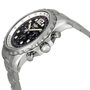 Stainless steel case with a stainless steel bracelet. Bi-directional rotating stainless steel bezel. Black dial with silver-tone hands and index hour markers. An Arabic numeral marks the 12 o'clock position. Minute markers. Navigation computer markings around the outer rim. Dial Type: Analog. Luminescent hands and markers. Date display between the 4 and 5 o'clock positions. Chronograph - three sub-dials displaying: 60 second, 30 minute and 12 hour. Automatic movement with a 42-hour power reserve. Scratch resistant sapphire crystal. Screw down crown. Solid case back. Case diameter: 46 mm. Case thickness: 24 mm. Deployment clasp with a push button release. Water resistant at 200 meters / 660 feet. Additional Information: Slide Rule" aka "Navigation Computer" which allows to compute different airborne calculations such as fuel consumption, climbing times & converting miles into nautical miles or kilometers. Functions: chronograph, hour, minute, second. Luxury watch style. Breitling Chronospace Auto Black Stainless Steel Automatic Men's Watch A2336035-BA68SS.