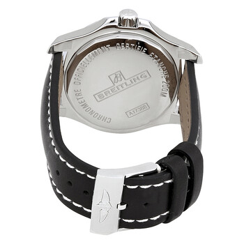 Silver-tone polished stainless steel case with a black leather strap. Uni-directional rotating satin-brushed stainless steel bezel. Mariner blue dial with luminous silver-tone hands and index hour markers. Minute markers around the outer rim. Dial Type: Analog. Luminescent hands and markers. Date display at the 3 o'clock position. Breitling Calibre 17 automatic movement with a 40-hour power reserve. Scratch resistant sapphire crystal. Screw-locked crown. Round case shape, case size: 44 mm, case thickness: 11.25 mm. Band width: 22/20 mm. Tang clasp. Water resistant at 200 meters / 660 feet. Functions: GMT, chronometer, date, hour, minute, second. Additional Info: 25 jewels. Luxury watch style. Watch label: Swiss Made. Breitling Colt Mariner Automatic Blue Dial Men's Watch A1738811/C906BKLT.