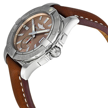 Stainless steel case with a brown leather strap. Uni-directional rotating bezel. Bronze dial with silver-tone hands and stick hour markers. Minute markers around the outer rim. Dial Type: Analog. Luminescent hands and markers. Date display appears at the 3 o'clock position. Seconds sub-dial at the 6 o'clock position. Automatic movement. Breitling 37 engine. Scratch resistant sapphire crystal. Pull / push crown. Solid case back. Case diameter: 36 mm. Case thickness: 12.3 mm. Round case shape. Band width: 16 mm / 18 mm. Tang clasp. Water resistant at 100 meters / 330 feet. Functions: date, hour, minute, second. Luxury watch style. Watch label: Swiss Made. Breitling Galactic 36 Automatic Bronze Dial Brown Leather Unisex Watch A3733011-Q582.