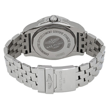 Stainless steel case with a stainless steel bracelet. Uni-directional rotating stainless steel bezel. Silver dial with silver-tone hands and stick hour markers. Minute markers around the outer rim. Dial Type: Analog. Luminescent hands and markers. Date display appears at the 3 o'clock position. Small seconds sub-dial at the 6 o'clock position. Automatic movement with 42 hour power reserve. Scratch resistant sapphire crystal. Pull / push crown. Solid case back. Case diameter: 36 mm. Round case shape. Band width: 18 mm. Fold over clasp with safety. Water resistant at 100 meters / 330 feet. Functions: date, hour, minute, second. Luxury watch style. Watch label: Swiss Made. Breitling Galactic 36 Automatic Silver Dial Stainless Steel Ladies Watch A3733012-G706.