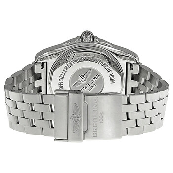 Stainless steel case with a stainless steel bracelet. Uni-directional rotating stainless steel bezel. Blue dial with luminous silver-tone hands and index hour markers. Minute markers around the outer rim. Dial Type: Analog. Luminescent hands and markers. Date display at the 3 o'clock position. Seconds sub-dial at the 6 o'clock position. Automatic movement with a 42 hour power reserve. Scratch resistant sapphire crystal. Pull / push crown - two gaskets. Solid case back. Case diameter: 36 mm. Case thickness: 12.3 mm. Round case shape. Double fold clasp. Water resistant at 100 meters / 330 feet. Functions: date, hour, minute, second. Casual watch style. Watch label: Swiss Made. Breitling Galactic 36 Blue Dial Stainless Steel Men's Watch A3733012-C824SS.