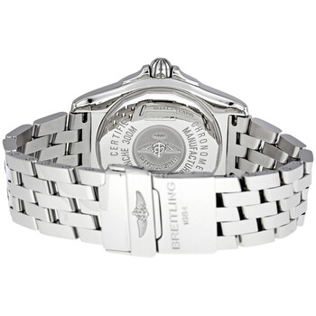 Stainless steel case with a stainless steel bracelet. Unidirectional stainless steel bezel. Blue dial with luminous hands and index hour markers. Minute markers around the outer rim. Dial Type: Analog. Luminescent hands and markers. Date display appears at the 3 o'clock position. Self winding automatic movement with a 42-hour power reserve. Scratch resistant sapphire crystal. Screw locked crown. Solid case back. Case diameter: 41 mm. Case thickness: 14 mm. Round case shape. Band width: 20 mm / 18 mm. Deployment clasp. Water resistant at 300 meters/ 1000 feet. Functions: hours, minutes, seconds, calendar. Dress watch style. Watch label: Swiss Made. Breitling Galactic 41 Blue Dial Men's Watch A49350L2-C806SS.