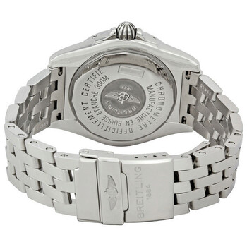 Stainless steel case with a stainless steel bracelet. Unidirectional ratcheted stainless steel bezel. Grey dial with luminous hands and stick hour markers. Minute markers around the outer rim. Date displays at the 3 o'clock position. Selfwinding automatic movement with 42-hour power reserve. Scratch resistant sapphire crystal. Screw locked crown. Screwed in case back. Case diameter: 41 mm. Case thickness: 14 mm. Deployment clasp. Water resistant at 300 meters/ 1000 feet. Functions: hours, minutes, seconds, date. Breitling Galactic 49 Grey Dial Men's Watch A49350L2-F549SS.