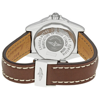 Stainless steel case with a brown leather bracelet. Unidirectional rotating bezel. Silver dial with silver-tone hands and index hour markers. Minute markers around the outer rim. Date display appears at the 4 o'clock position. Automatic movement. Scratch resistant sapphire crystal. Screw locked crown with two gaskets. Case diameter: 41 mm. Case thickness: 14 mm. Deployment clasp. Water resistant at 300 meters/ 1000 feet. Functions: hours, minutes, seconds, date. Breitling Galactic 41 Silver Dial Brown Leather Strap Men's Watch A49350L2-G699BRLD.