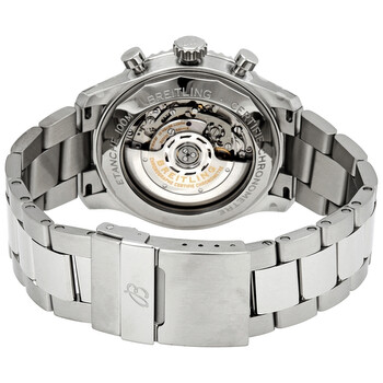 Stainless steel case with a stainless steel bracelet. Bi-directional rotating stainless steel bezel. Blue dial with luminous silver-tone hands and Arabic numeral hour markers. Arabic numeral minute markers (at 5 minute intervals). Minute markers around the outer rim. Dial Type: Analog. Luminescent hands and markers. Date display between the 4 and 5 o'clock positions. Chronograph - three white sub-dials displaying: 60 second, 30 minute and 12 hour. Breitling calibre 01 automatic movement, containing 47 Jewels, composed of 346 parts, bitting at 28800 vph, and has a power reserve of approximately 70 hours. Scratch resistant sapphire crystal. Screw locked crown. Transparent case back. Round case shape. Case size: 43 mm. Case thickness: 13.87 mm. Band width: 23 mm. Deployment clasp. Water resistant at 100 meters / 330 feet. Functions: chronograph, column wheel, date, hour, minute, second, chronometer. Luxury watch style. Watch label: Swiss Made. Breitling Navitimer 8 Chronograph Automatic Blue Dial Men's Watch AB0119131C1A1.