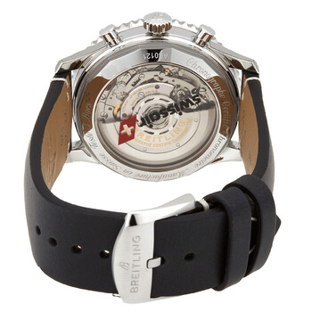 Stainless steel case with a black leather strap. Bi-directional rotating stainless steel bezel. Black dial with luminous red hands and index hour markers. Minute markers. Slide rule markers around the outer rim. Dial Type: Analog. Luminescent hands and markers. Date display between the 4 and 5 o'clock positions. Chronograph - three sub-dials displaying: 60 second, 30 minute and 12 hours. Breitling calibre 01 automatic movement, containing 47 Jewels, composed of 346 parts, bitting at 28800 vph, and has a power reserve of approximately 70 hours. Scratch resistant sapphire crystal. Pull / push crown. Transparent case back. Round case shape. Case size: 43 mm. Case thickness: 14.25 mm. Band width: 22 mm / 20 mm. Tang clasp. Water resistant at 30 meters / 100 feet. Functions: chronograph, column wheel, date, hour, minute, second, chronometer. Luxury watch style. Watch label: Swiss Made. Additional Information: The Slide-Rule aka Navigation-Computer complication computes airborne calculations such as fuel consumption, climbing times & converts miles into nautical miles or kilometers. Breitling Navitimer B01 Chronograph Automatic Black Dial Men's Watch AB01211B1B1X1.